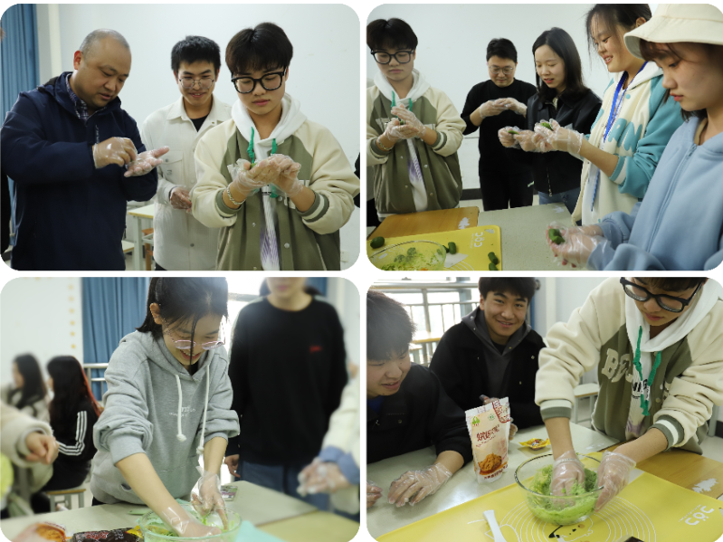 “我要做一个小兔子形状的青团!”“看,我的青团做的多完美!”“我做的青团可比外面卖的还要好吃呢!”同学们一边认真揉着青团,一边你一言、我一语地聊着,每个人的脸上都洋溢着灿烂的笑容,学院的学工队伍也纷纷加入其中,与同学们一起手做青团,带领同学们一起体验传统文化习俗的乐趣。