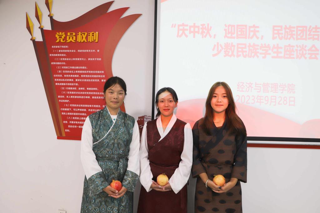 活动最后,学院为各民族员工发放了月饼和寓意民族团结的石榴,希望同学们能够牢牢记住习近平总书记提到的“五十六个民族要像石榴籽一样紧紧抱在一起”的理念与精神,希望同学们要时刻牢记民族团结的重要性,要坚定不移地做民族团结的践行者。