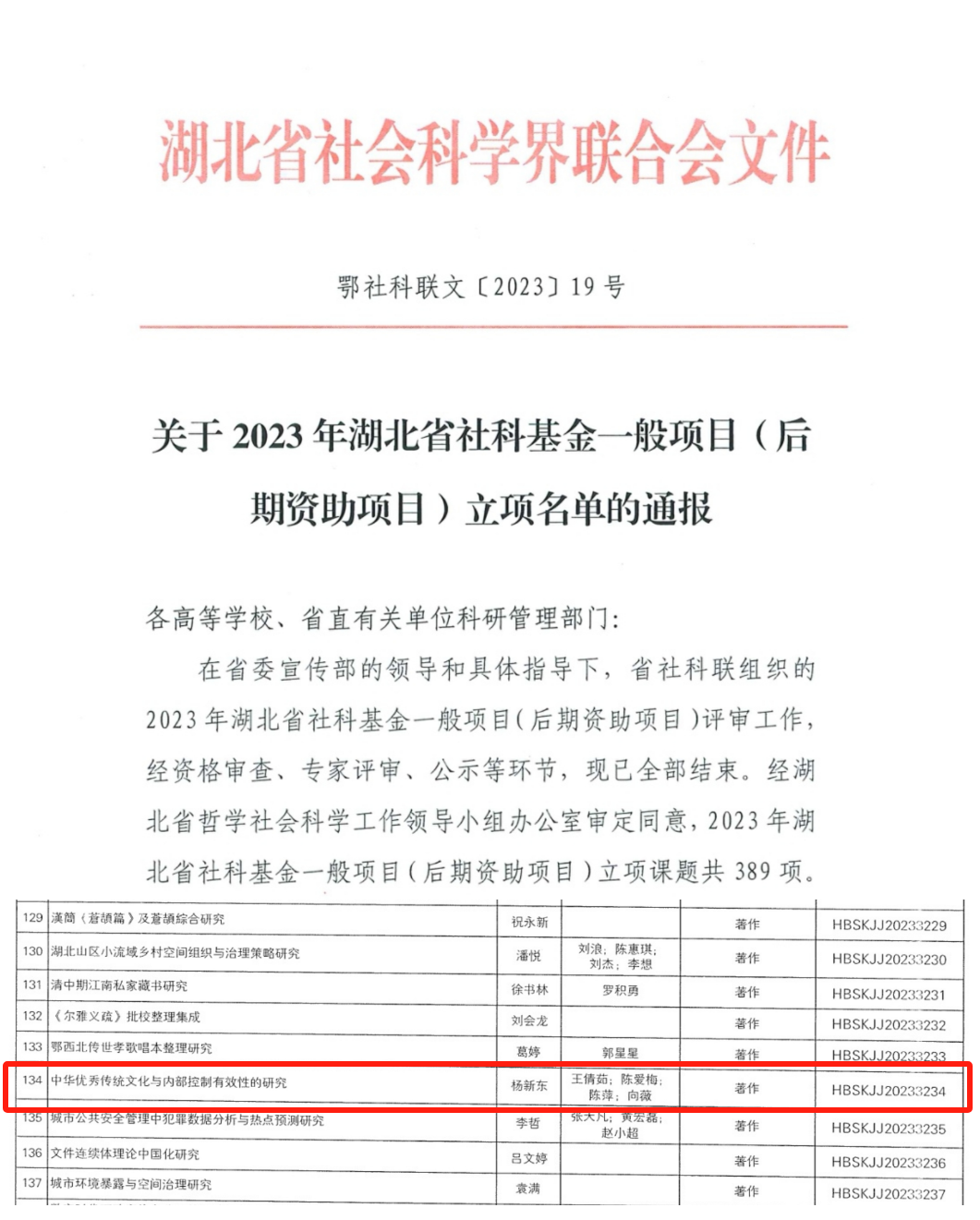 日前,湖北省社科联发布了2023年湖北省社会科学基金一般项目(后期资助项目)立项名单(鄂社科联文[2023]19号),公司由杨新东老师主持的项目获批立项(项目编号:HBSKJJ20233234),这是公司首次入选该基金项目。