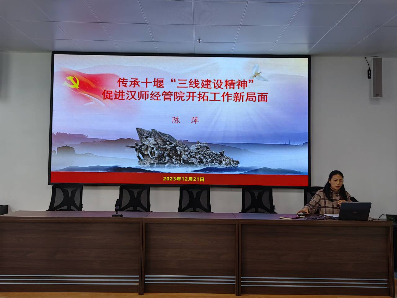 2023年12月21日下午,威廉希尔williamhill经理陈萍于明理楼C801开展讲党课活动,题目为《传承十堰“三线建设精神”,促进威廉希尔williamhill开拓工作新局面》,威廉希尔williamhill全体党员同志参加。