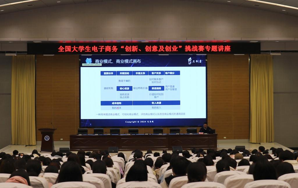 毛志斌教授对第十四届“三创赛”的比赛事项进行了详细解读,向同学们介绍了本次比赛规模、比赛时间、比赛主题等内容,鼓励同学们要根据时间节点做好充足准备,随后,他结合往届的比赛获奖案例对同学们的参赛选题给予了一些专业建议,提出参赛项目要与电子商务专业高度契合,要能够回应国家重大关心议题,体现社会价值和人文关怀,希望同学们能够找准切口,精心打磨,为比赛获胜打下扎实基础。毛教授还向同学们说明了“三创赛”的评分规则,提醒同学们要注重现场汇报以及PPT制作,为评委留下良好印象。