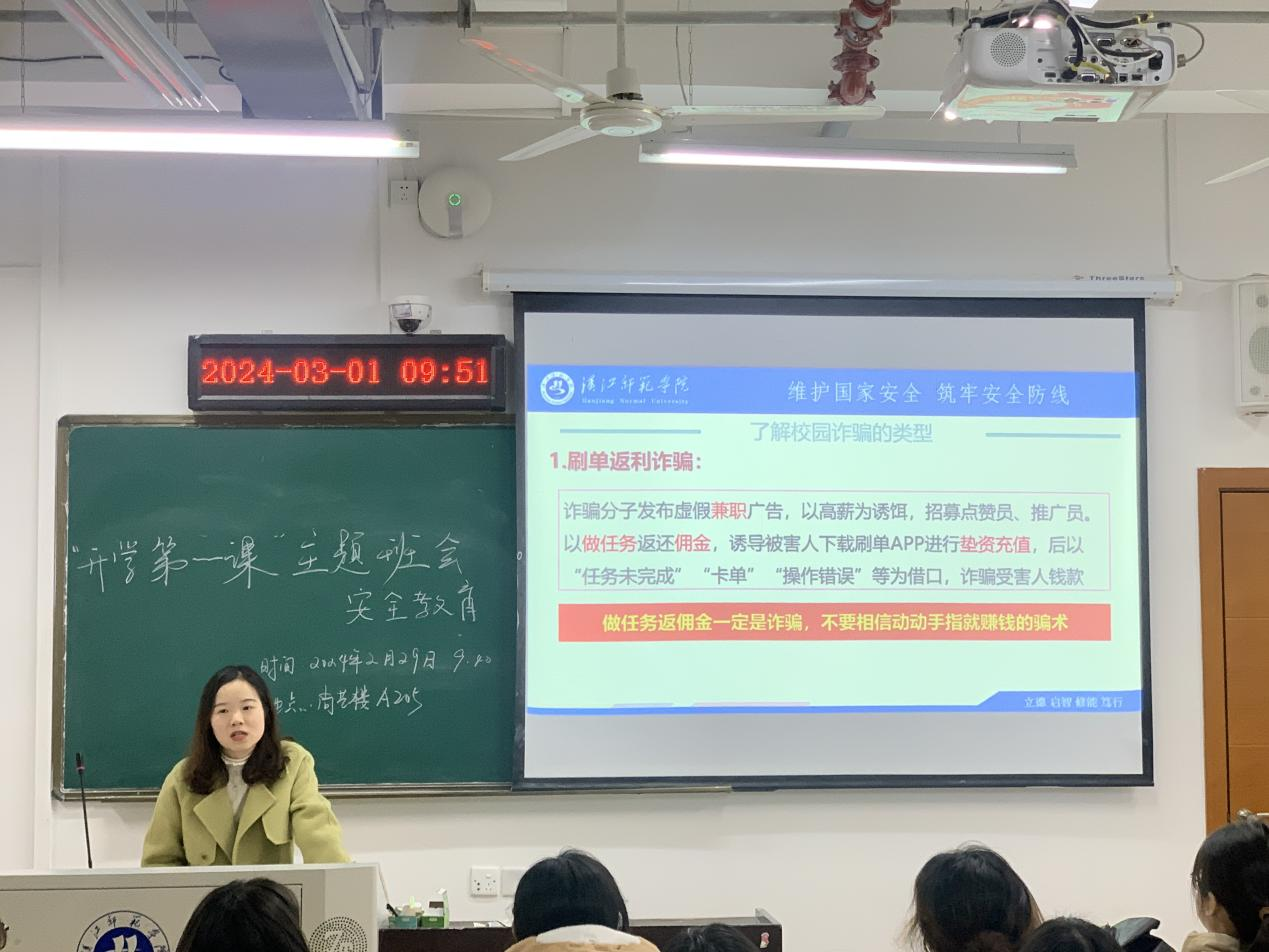 班会课上,各年级辅导员分别从“维护国家安全、擦亮识骗慧眼,掌握消防知识、提高自防能力”等多个方面对员工开展开学第一课,积极引导员工要增强自我安全防范意识,树立安全第一的思想,提高自我保护能力,并要求员工及时收心,用崭新的面貌、积极的心态投入到新的学期。