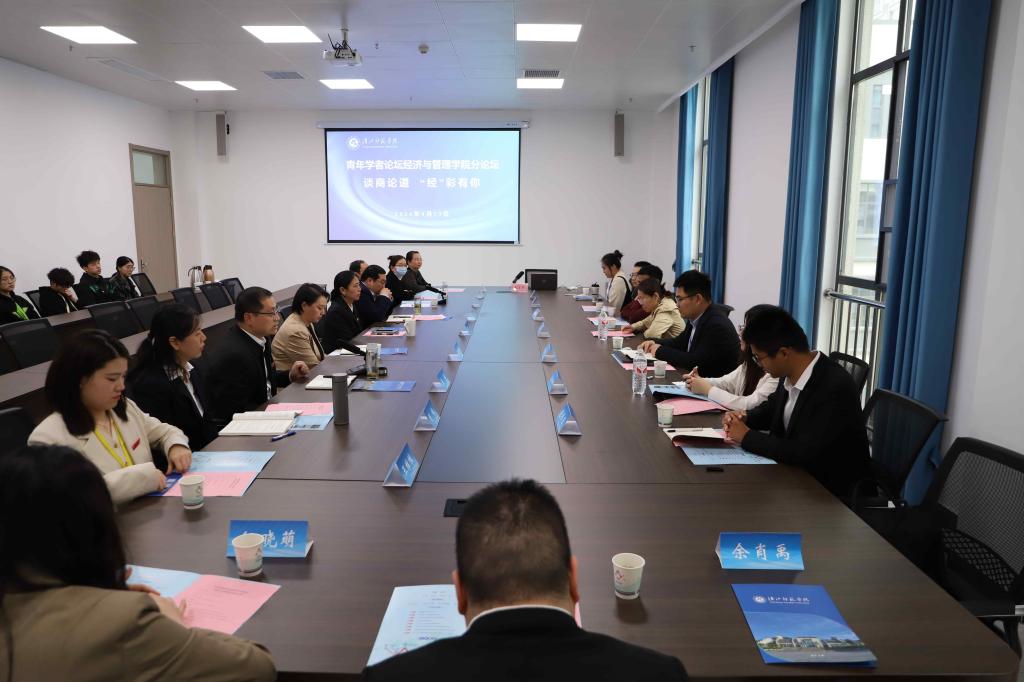 4月12日下午两点半,威廉希尔williamhill在明理楼B701会议室举办主题为“谈商论道,‘经’彩有你”的青年学者分论坛。学院经理陈萍、分党委书记陈爱梅、副经理盛爱辉、副经理杨新东、分党委副书记张宇、各专业负责人、青年教师代表及7名青年学者参加。论坛由副经理杨新东主持。